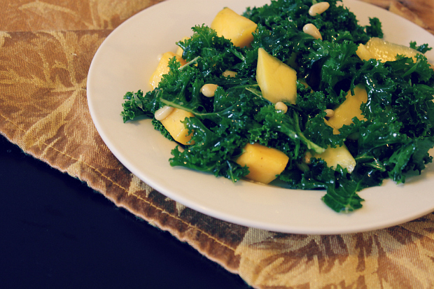 mango and pine nut kale salad